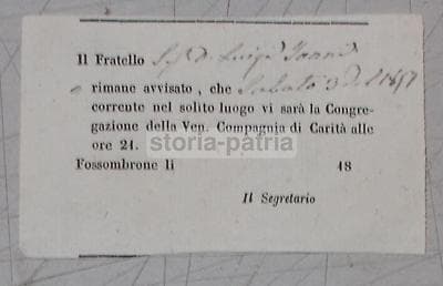 Marche, Fossombrone: Antica Congregazione Della Compagnia Di Carità Convocazione Dell'Ottocento
