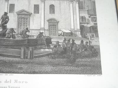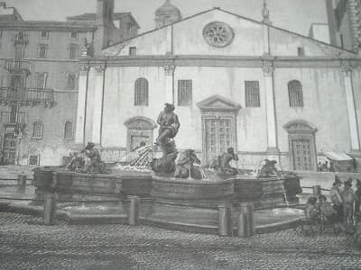 Roma, Piazza Navona: Fontana Del Moro. Incisione Di Domenico Amici, 1840
