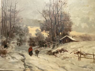 Grande Veduta Paesaggistica Di Ilio Giannaccini, 'Nevicata', Dipinto Certificato
