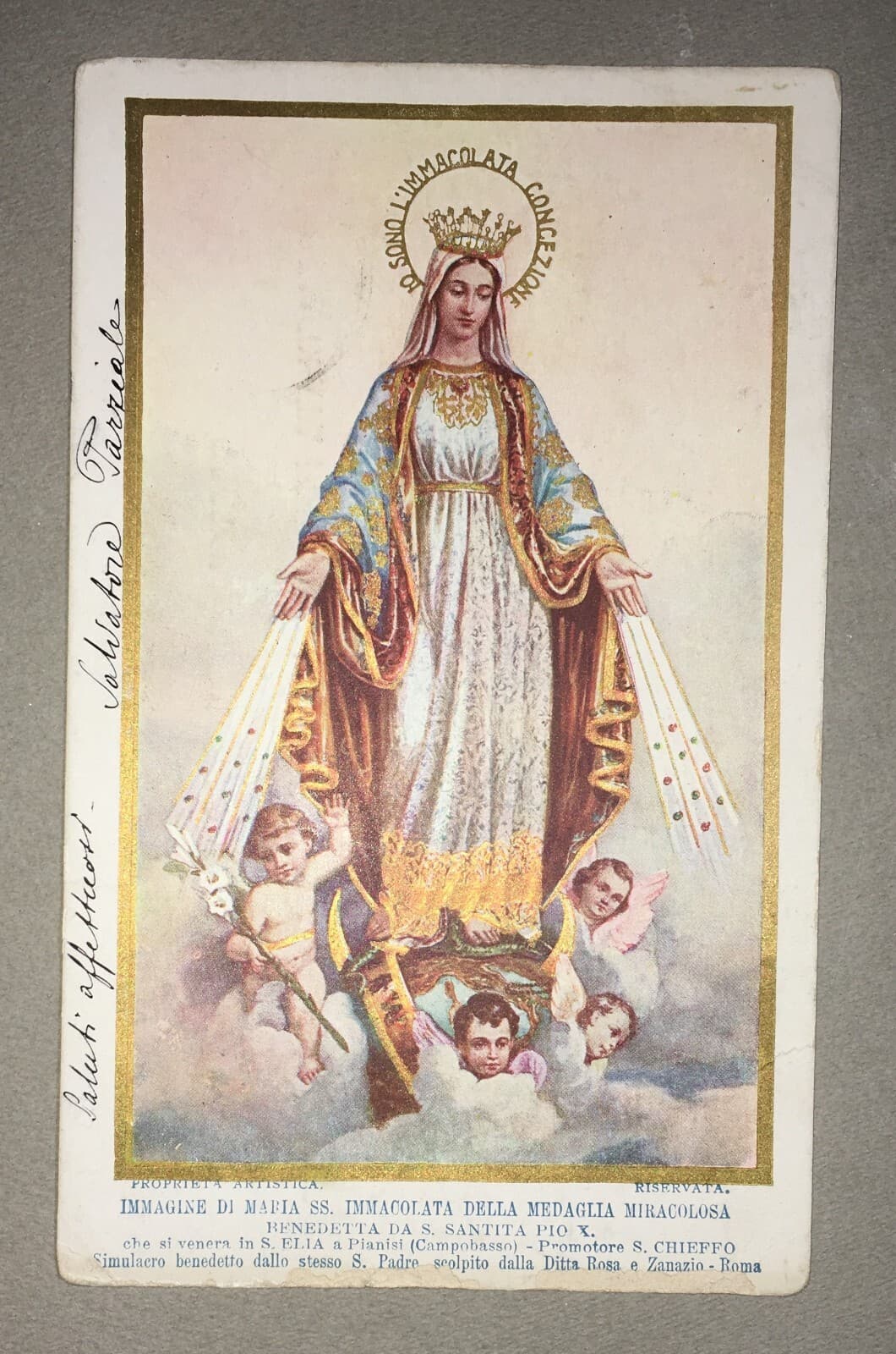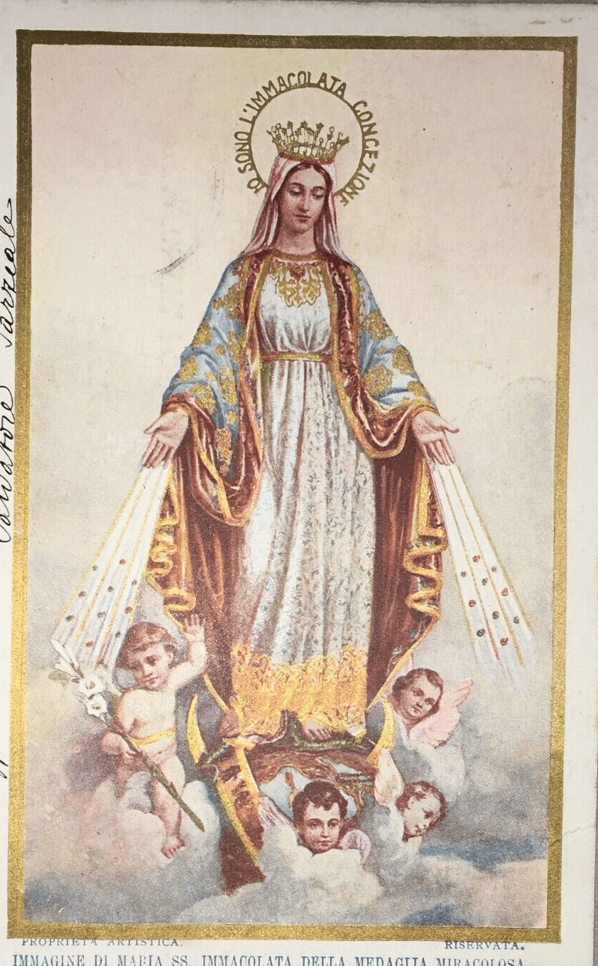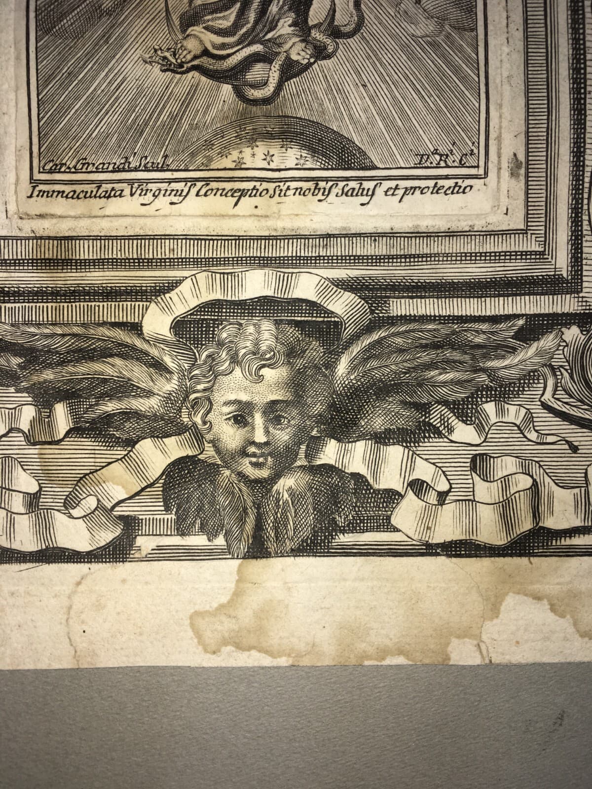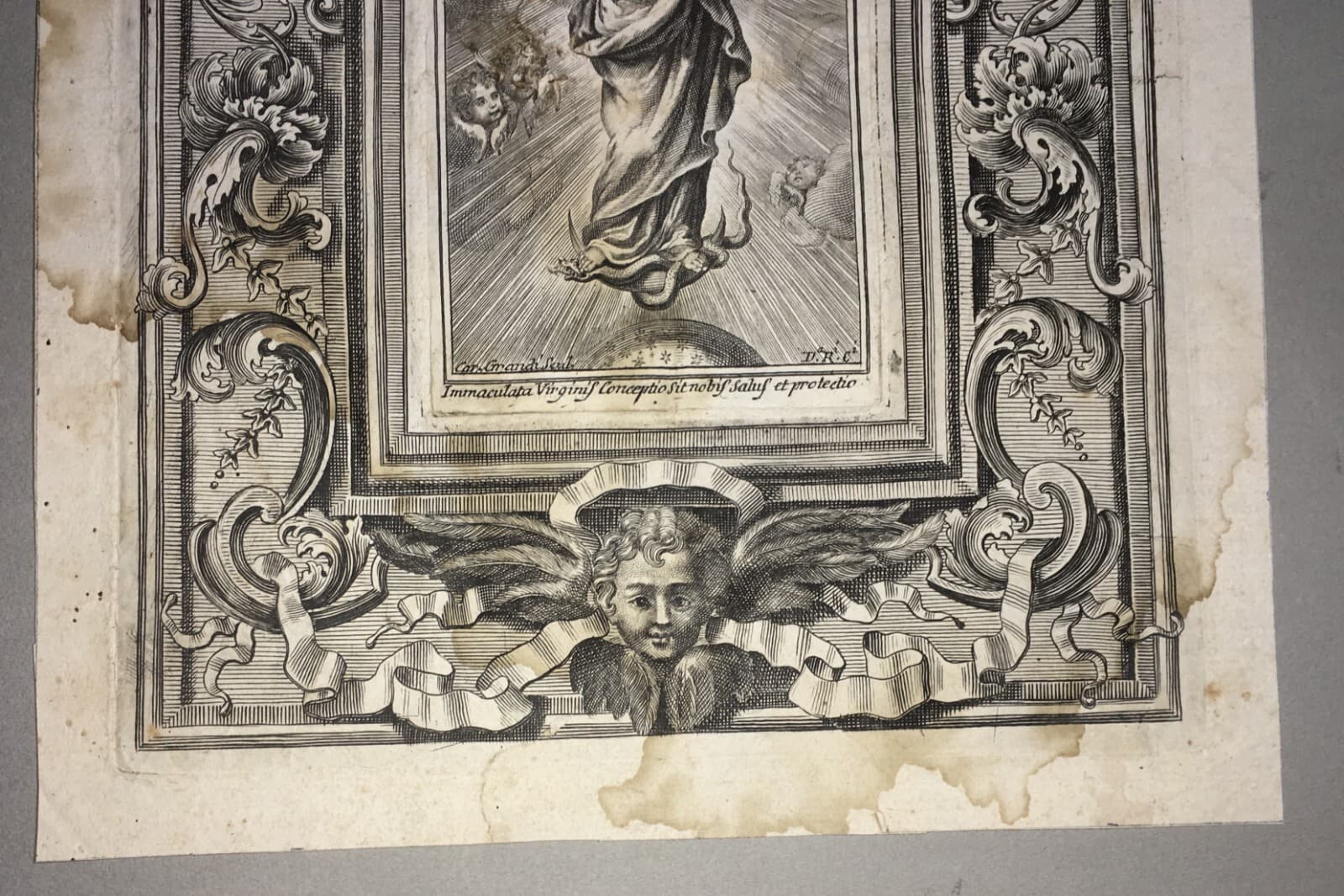 Antica Stampa Popolare Devozionale Madonna Immacolata Artista Carlo Grandi XVIII Secolo