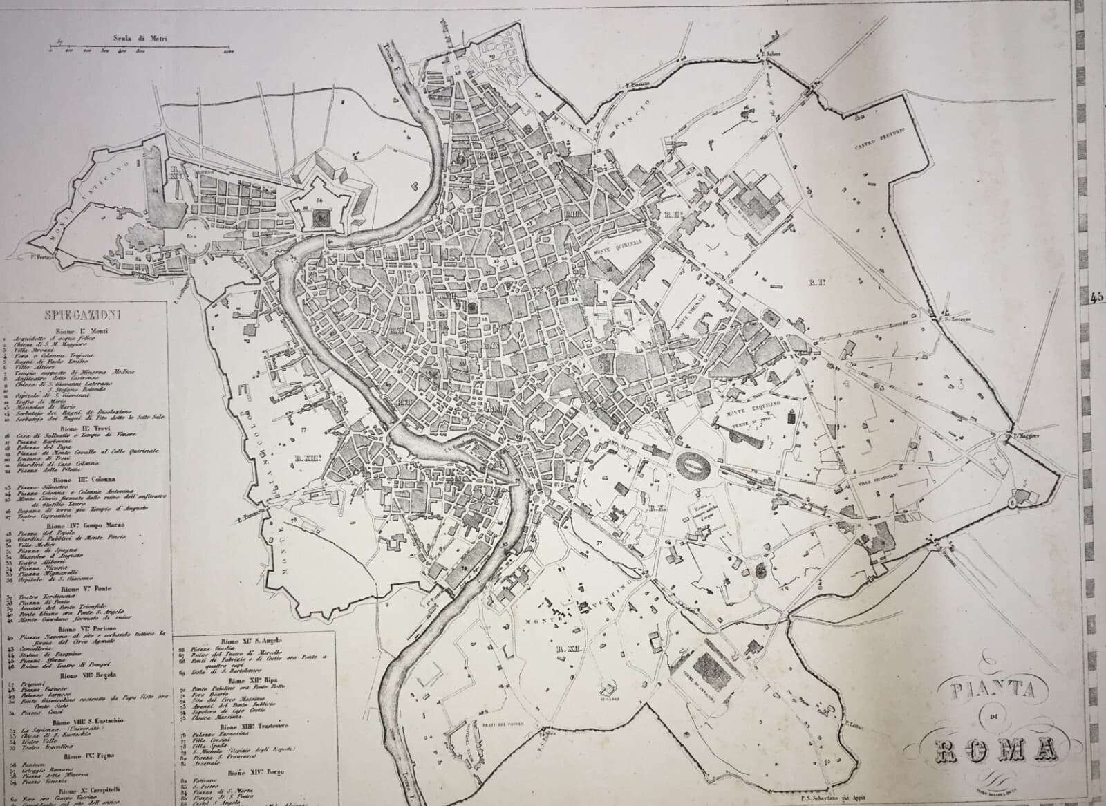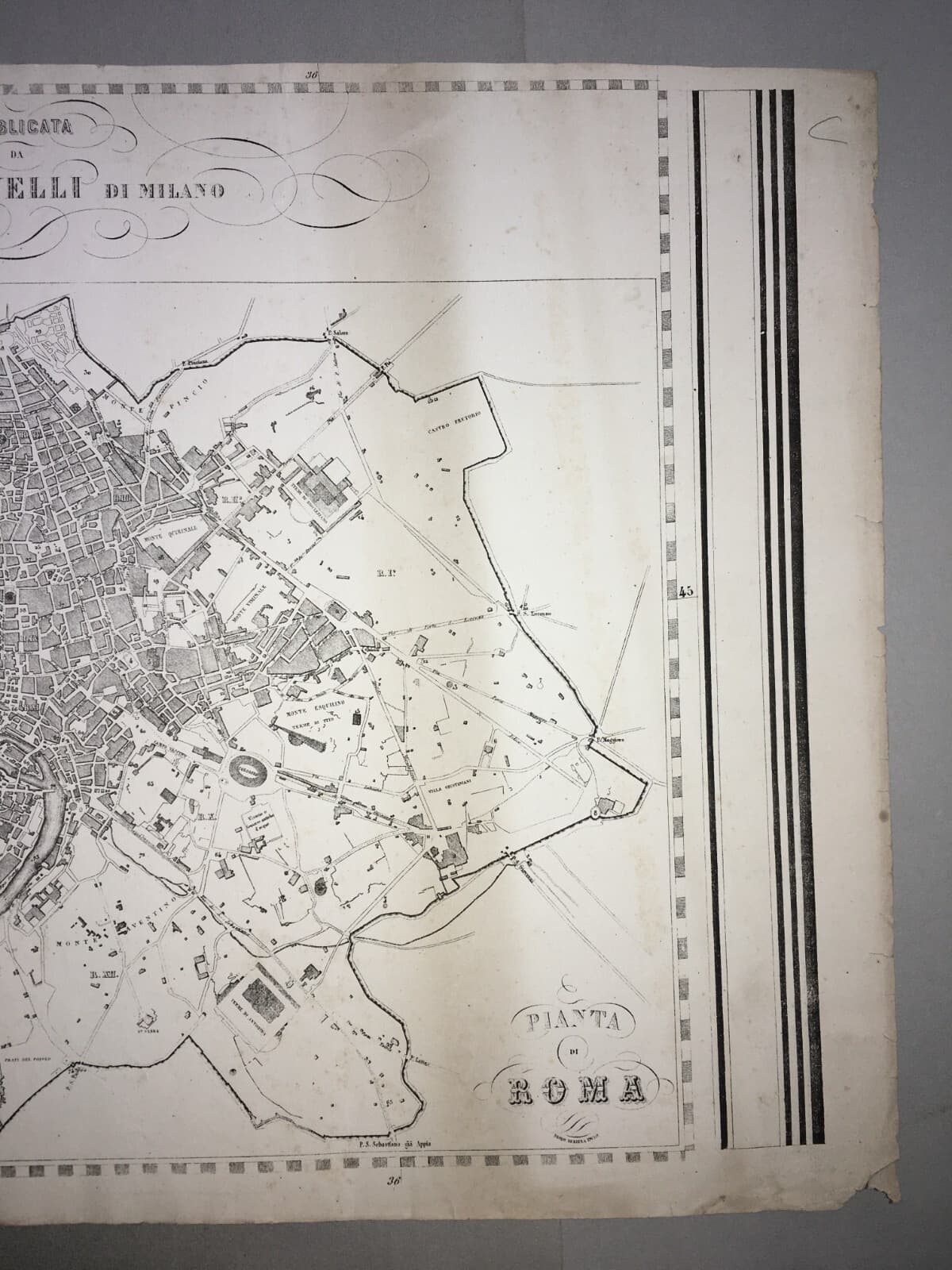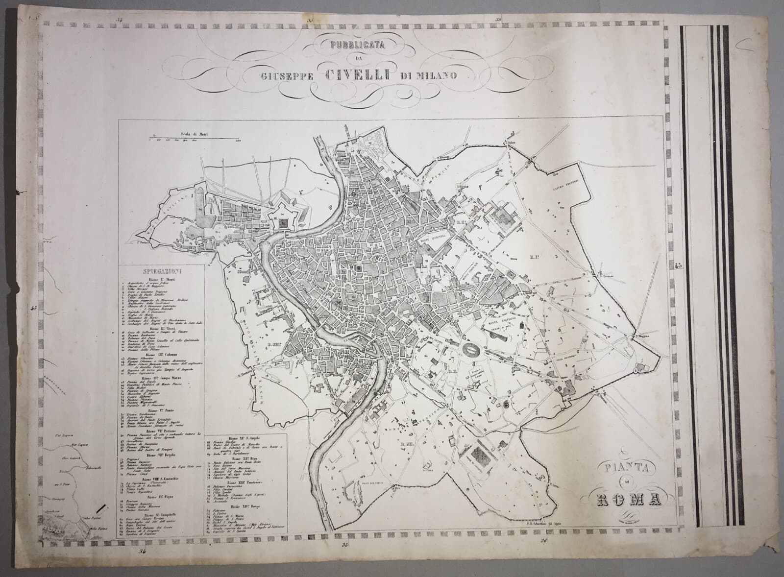 Antica Cartografia: Pianta Di Roma. Incisione Di Giuseppe Civelli E Paolo Bezzera