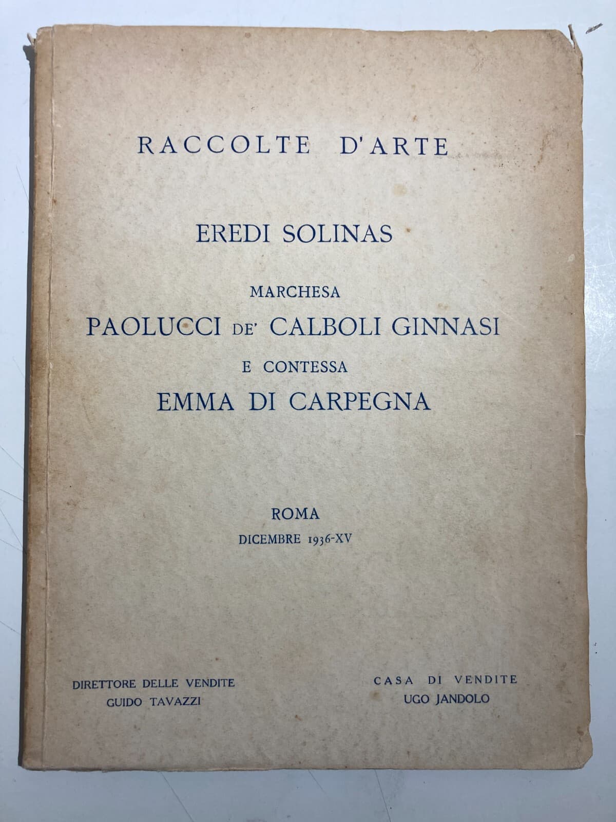 Arte, Dipinti Antichi, Orologi, Tappeti: Antico Catalogo d'Asta In Roma, Eredi Solinas