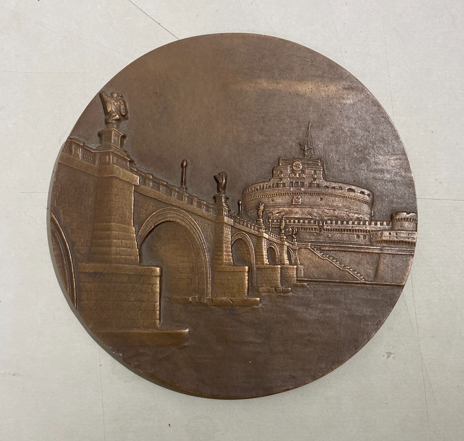 Roma, Castel Sant'Angelo E Ponte. Veduta Prospettica. Placca Bronzea