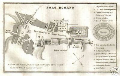 Mappa Antica Del Foro Romano, Colosseo, Campo Vaccino E Palatino (1850 Ca.)