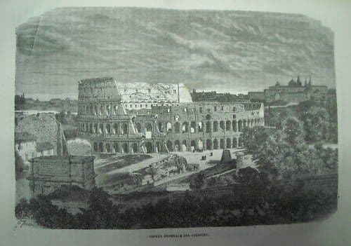 Antica Incisione Xilografica Colosseo Roma 1870 E. Theron