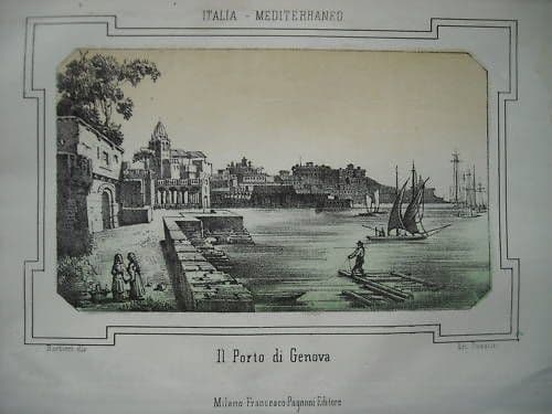Veduta Del Porto Di Genova. Litografia Originale Di Barbieri E Rossetti, XIX Secolo