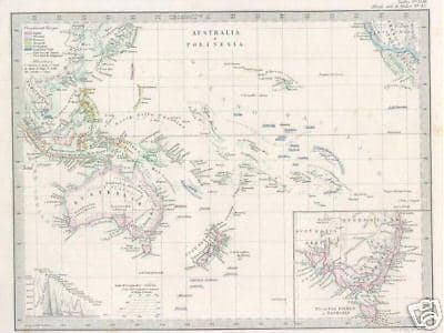 Cartografia Antica Di Australia, Polinesia E Giappone Stieler, 1869