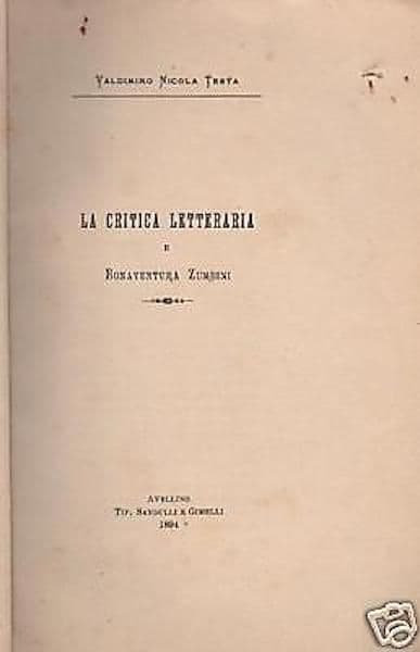 Critica Letteraria E Bonaventura Zumbini, 1894. Edizione Rara