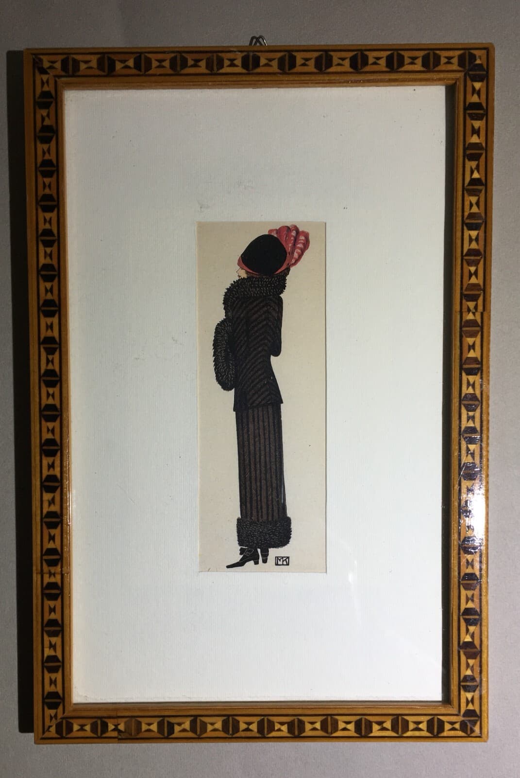 Cornice In Legno Intarsiato Con Figurino Di Moda