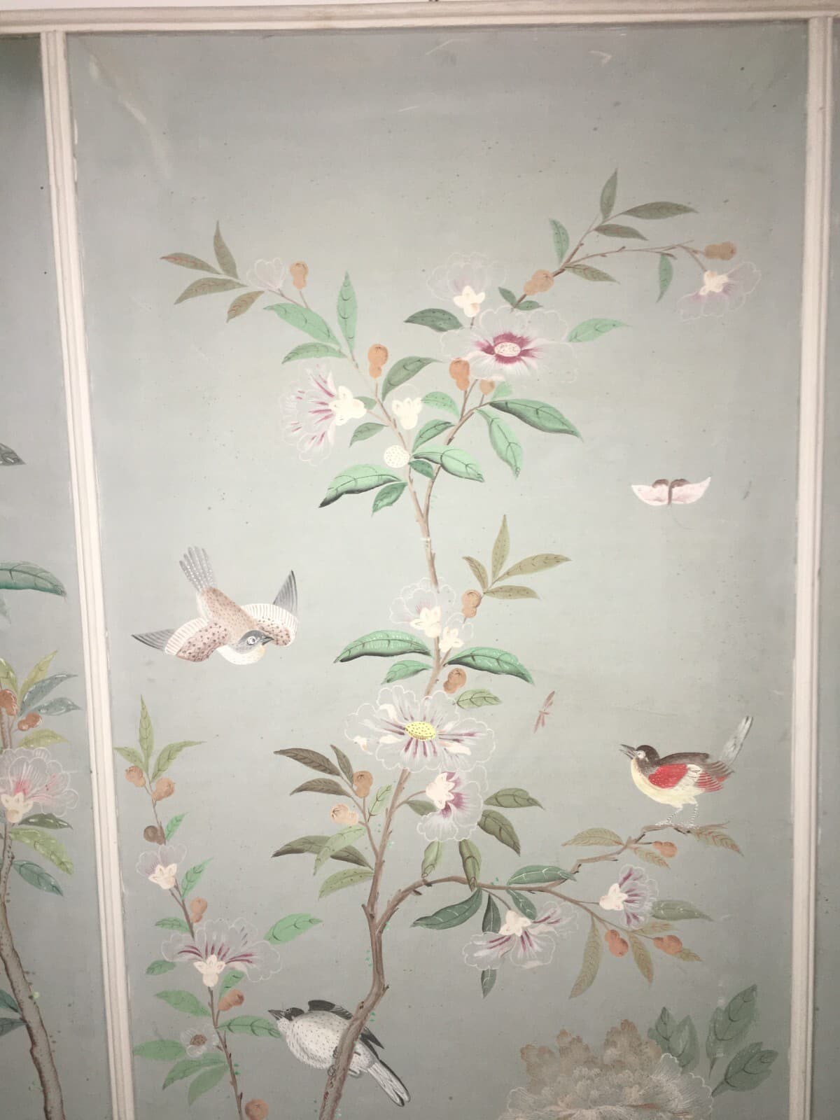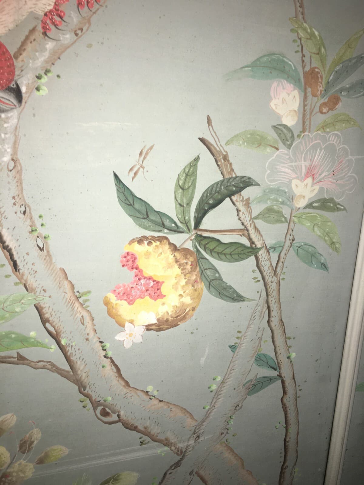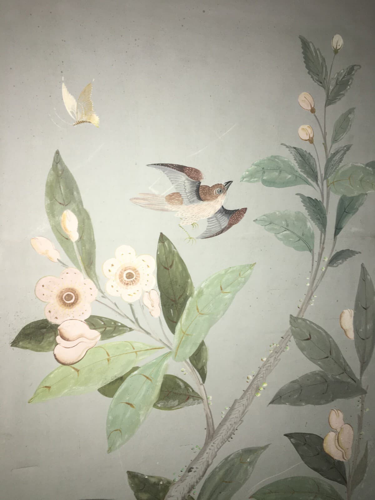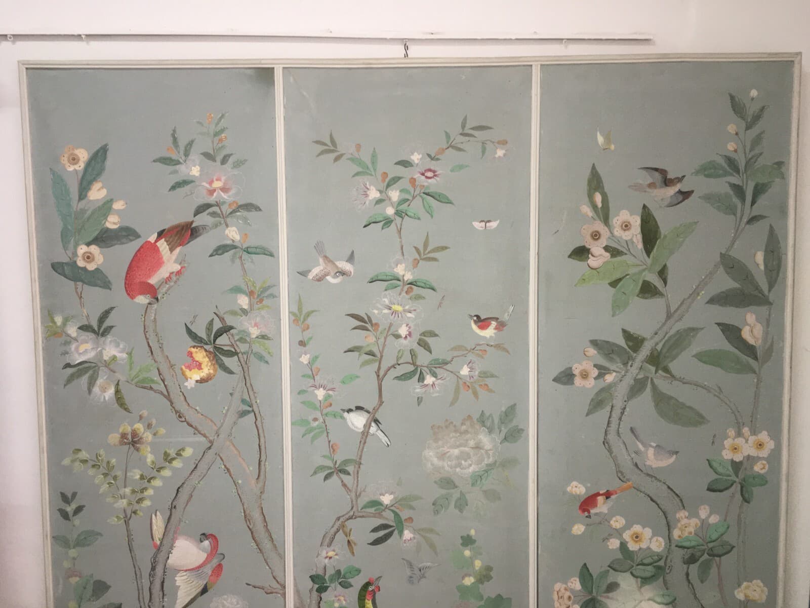 Artistico E Decorativo Grande Dipinto Fiori E Uccelli Pannello Con Tre Scene