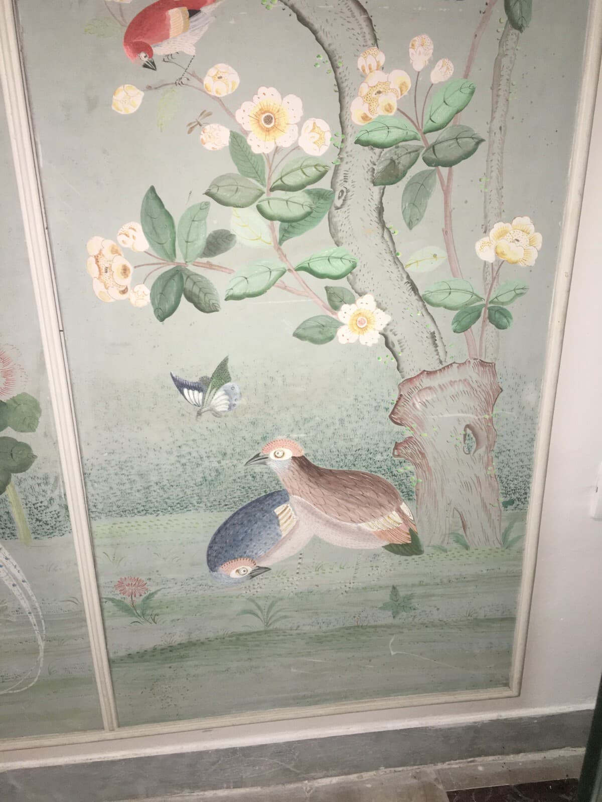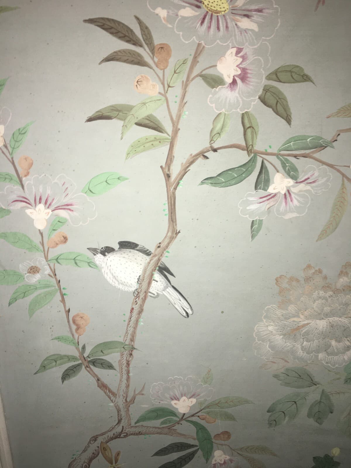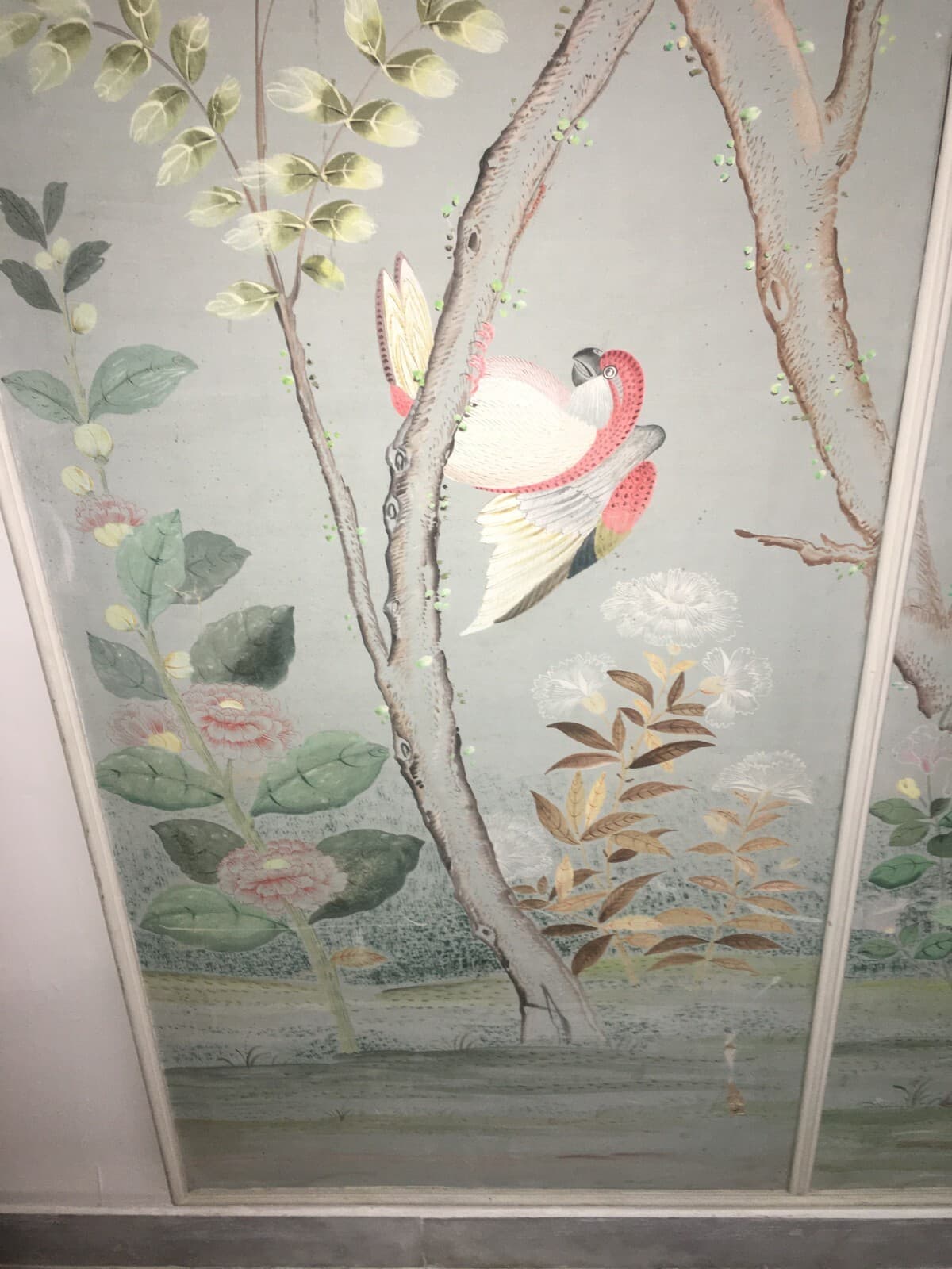 Artistico E Decorativo Grande Dipinto Fiori E Uccelli Pannello Con Tre Scene