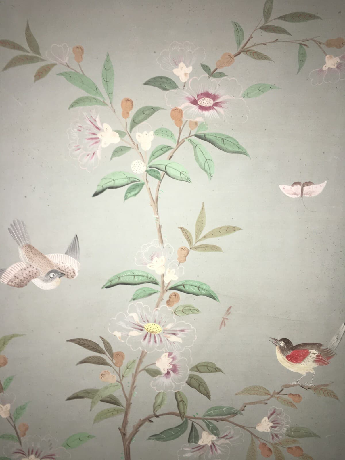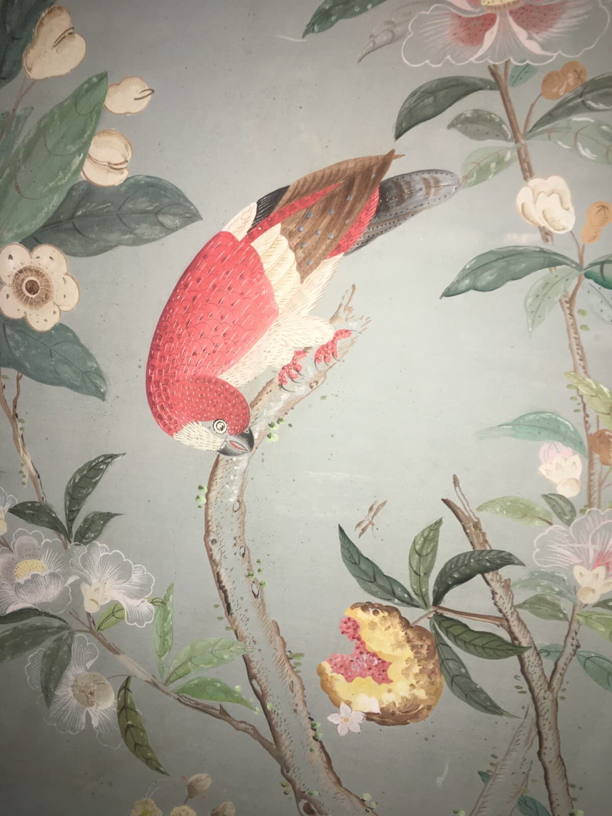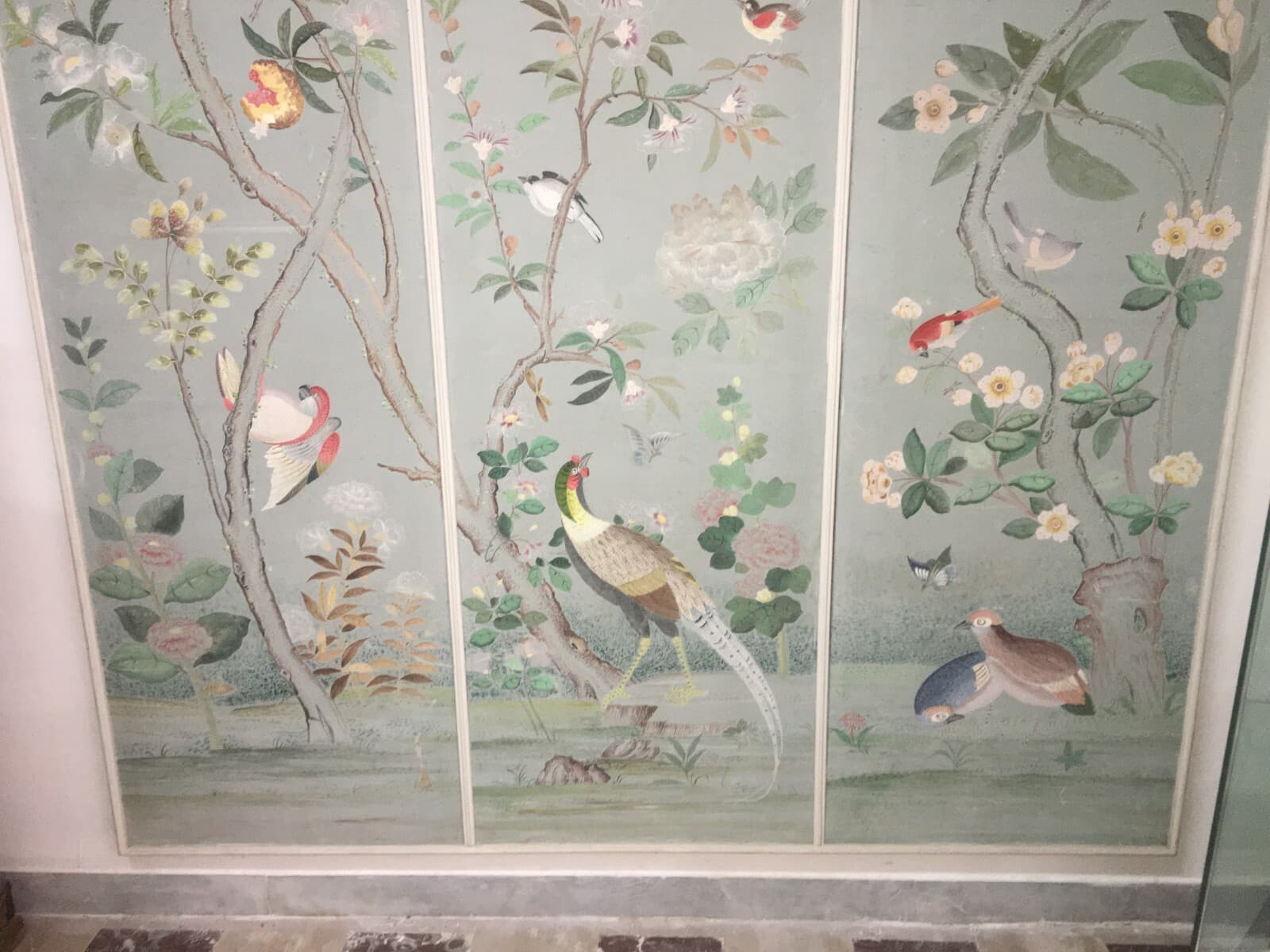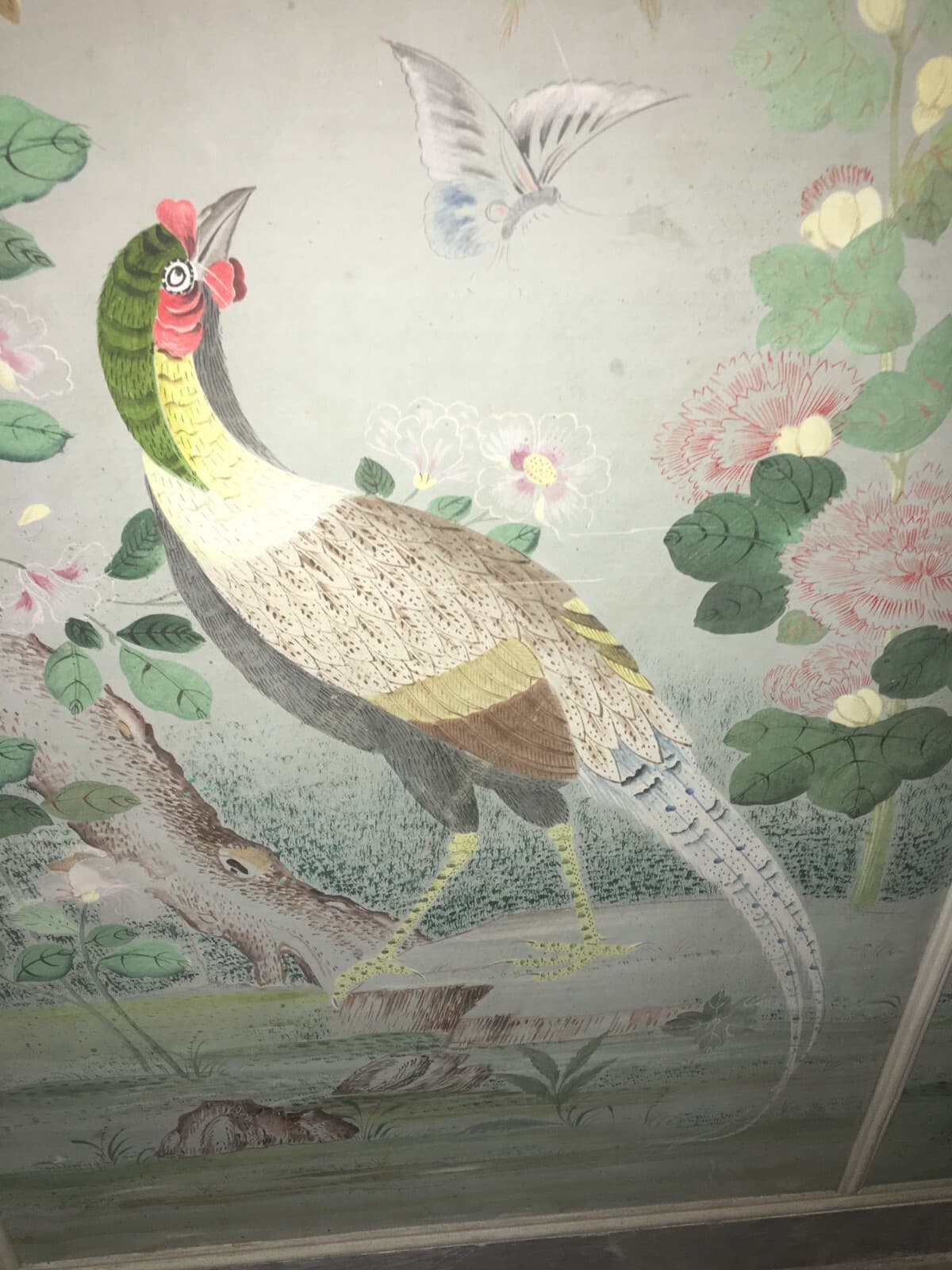 Artistico E Decorativo Grande Dipinto Fiori E Uccelli Pannello Con Tre Scene