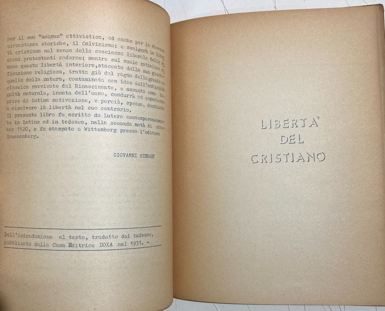Lutero Libertà Del Cristiano Miegge Federazione Unioni Valdesi Edizione 1957