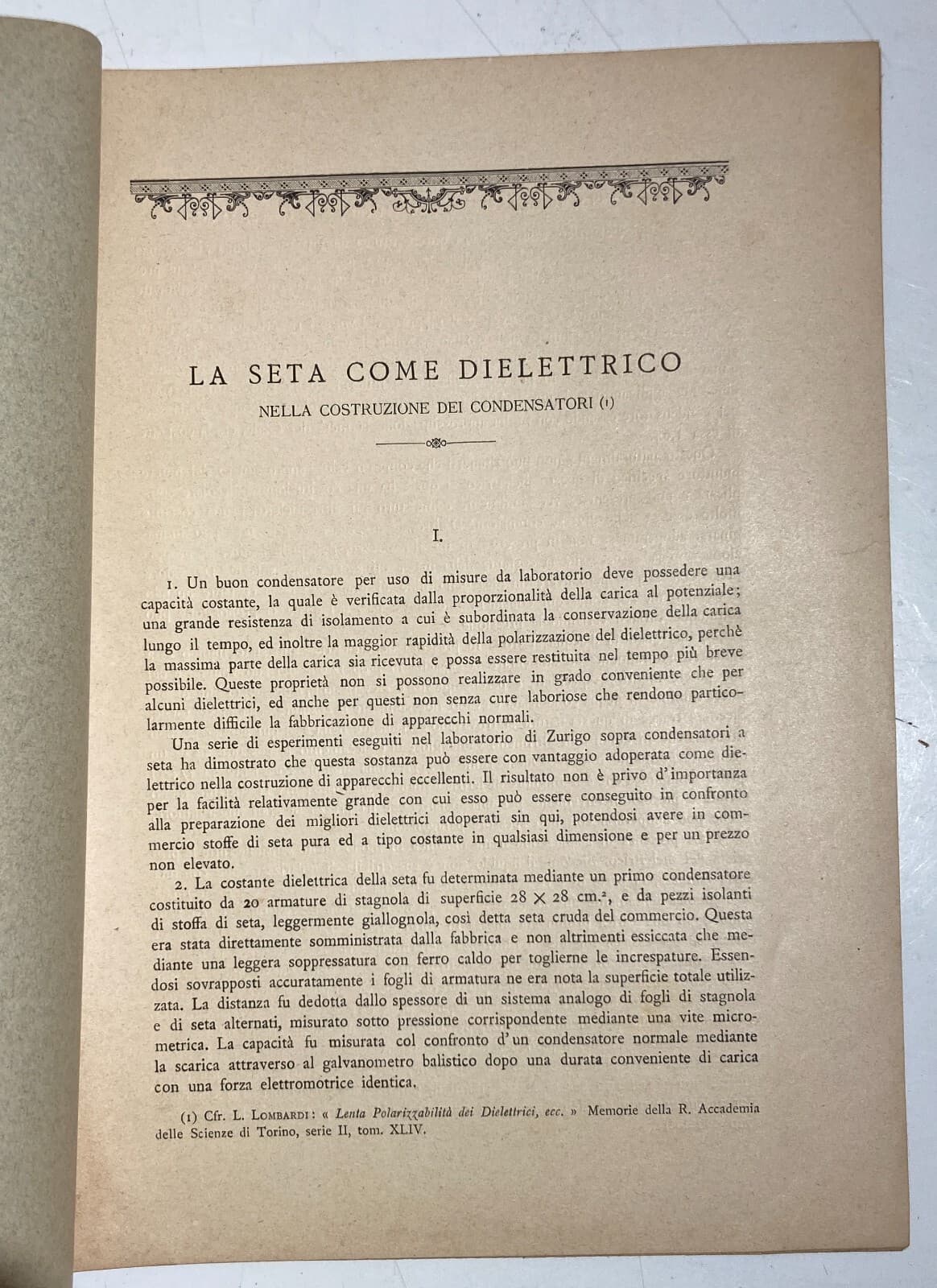 Elettricità Ed Elettrotecnica: La Seta Nei Condensatori. Antica Edizione, Luigi Lombardi