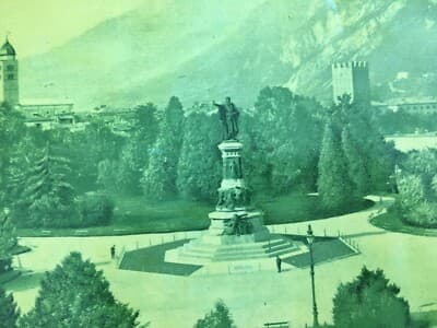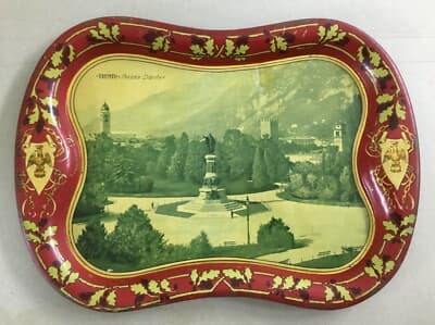 Trento: Piazza Dante. Antica Veduta, Vassoio Decorativo Pubblicitario E Araldica, Primo Novecento.