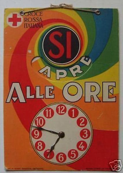 Croce Rossa Italiana: Cartello Pubblicitario Con Disco Orario Da Farmacia