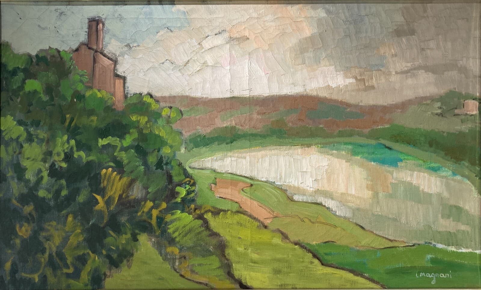 Paesaggio Laziale, Nemi Veduta Paesaggistica Dipinto Di L. Magnani