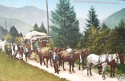 Cartolina d'Epoca: Madonna Di Campiglio Con Diligenza E Cavalli