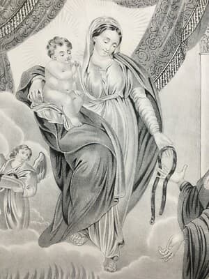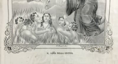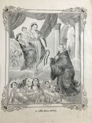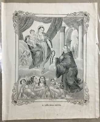 Antica Stampa Popolare Devozionale: Madonna Della Cintura, Lito Petruzzelli, Bari