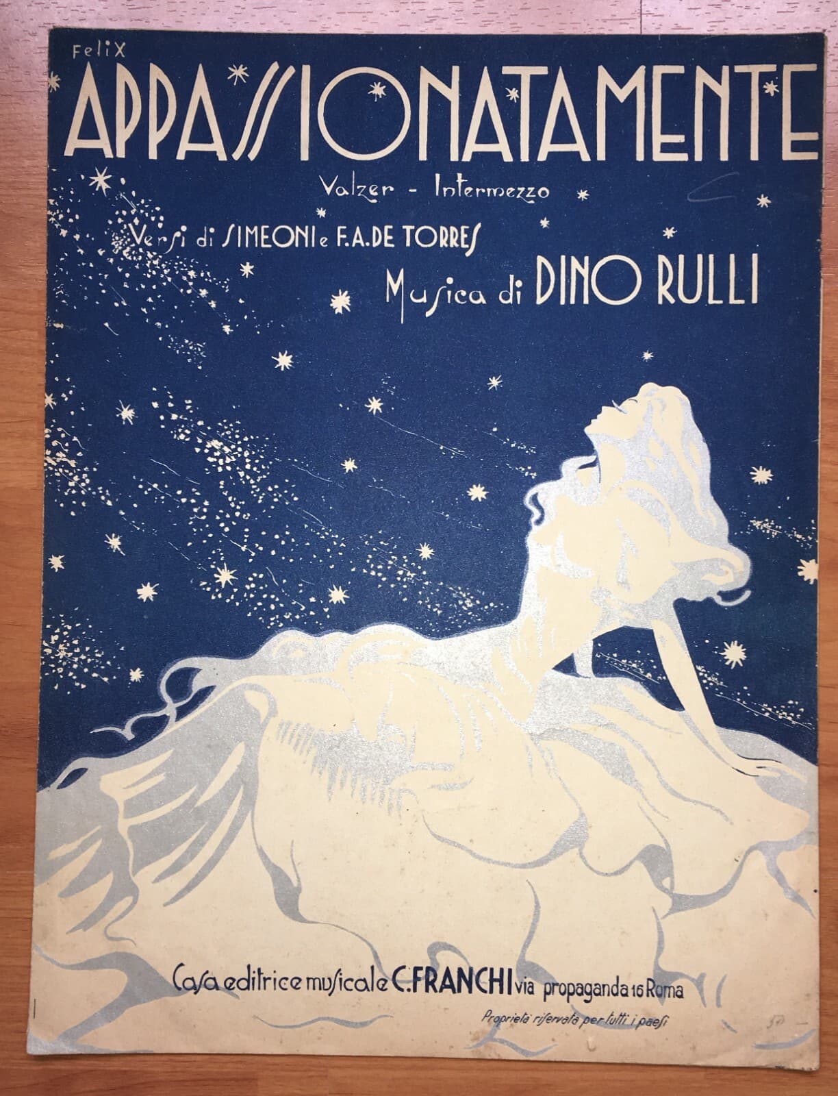 Spartito d'Epoca: Valzer Appassionatamente. Dino Rulli, Felix, 1945