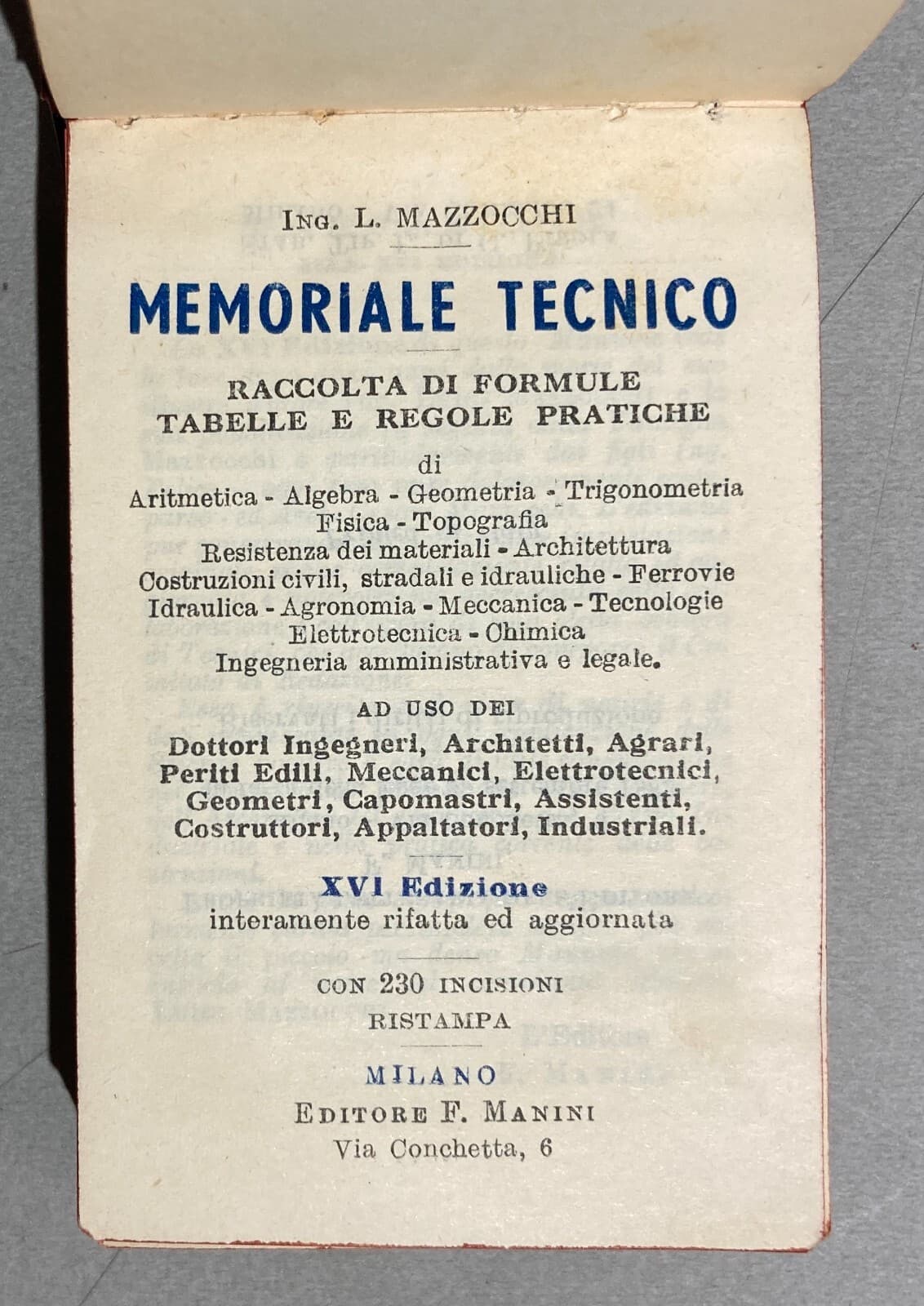 Prontuario Tecnico Formulario Mazzocchi, Edizione Tascabile, Anni '50