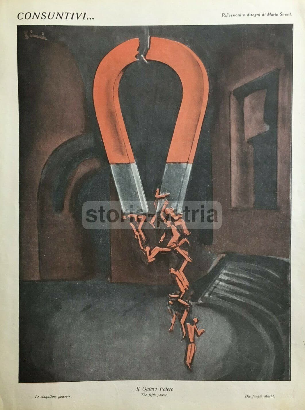 Arte, Fascismo, Politica Ed Economia: Rara Illustrazione Di Mario Sironi Il Quinto Potere