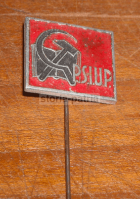 Distintivo Politico PSIUP Con Libro E Falce E Martello