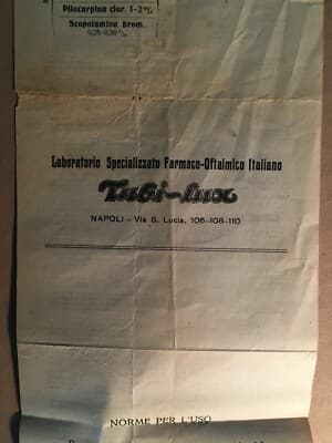 Farmaceutica, Medicina, Oculistica: Collirio Pilocarpina Pubblicitaria, Napoli