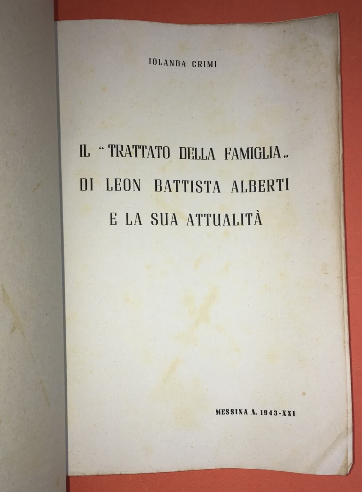 Pedagogia E Famiglia In Leon Battista Alberti Iolanda Crimi, Messina, 1943