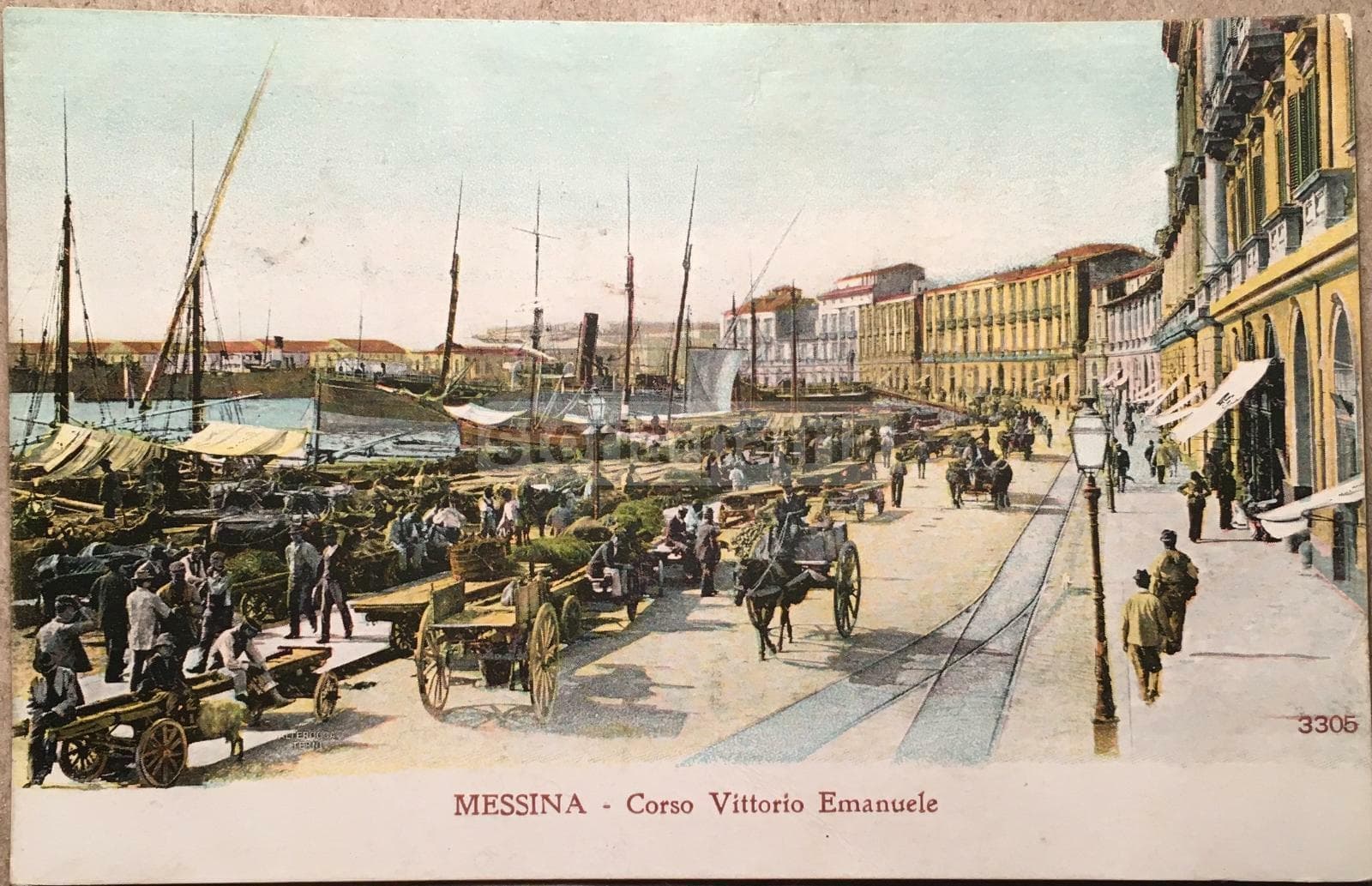 Sicilia, Messina: Animata Veduta Folklorica Con Carretti, Barche E Negozi A Colori