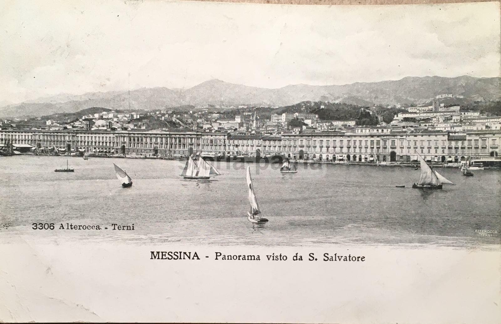 Sicilia, Messina, Antica Veduta Portuale Con Barche A Vela Da San Salvatore, Cartolina Del Primo Novecento