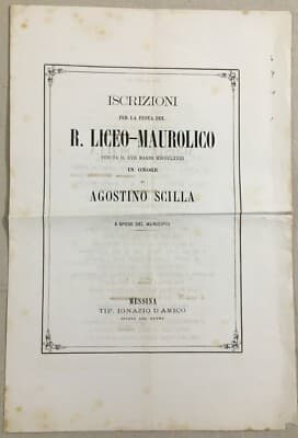 Sicilia, Messina, Scuole: Liceo Maurolico Agostino Scilla, 1868, Rara Edizione