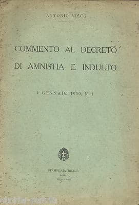 Giuridica, Politica, Legislazione: Amnistia E Indulto Commento Al Decreto, Visco 1930