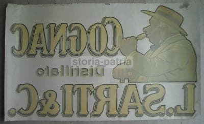 Liquori Distillazione Cognac Sarti: Vetrofania d'Epoca Forti Roma Da Collezione