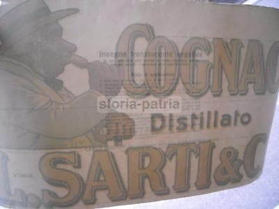 Liquori Cognac Distillato Sarti: Rara Vetrofania d'Epoca Forti, Schimpf, Norimberga