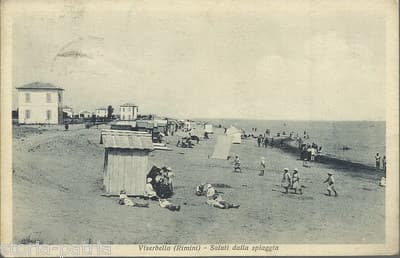 Romagna, Rimini, Viserbella: Antica Veduta, Spiaggia Con Bagnanti Animatissima