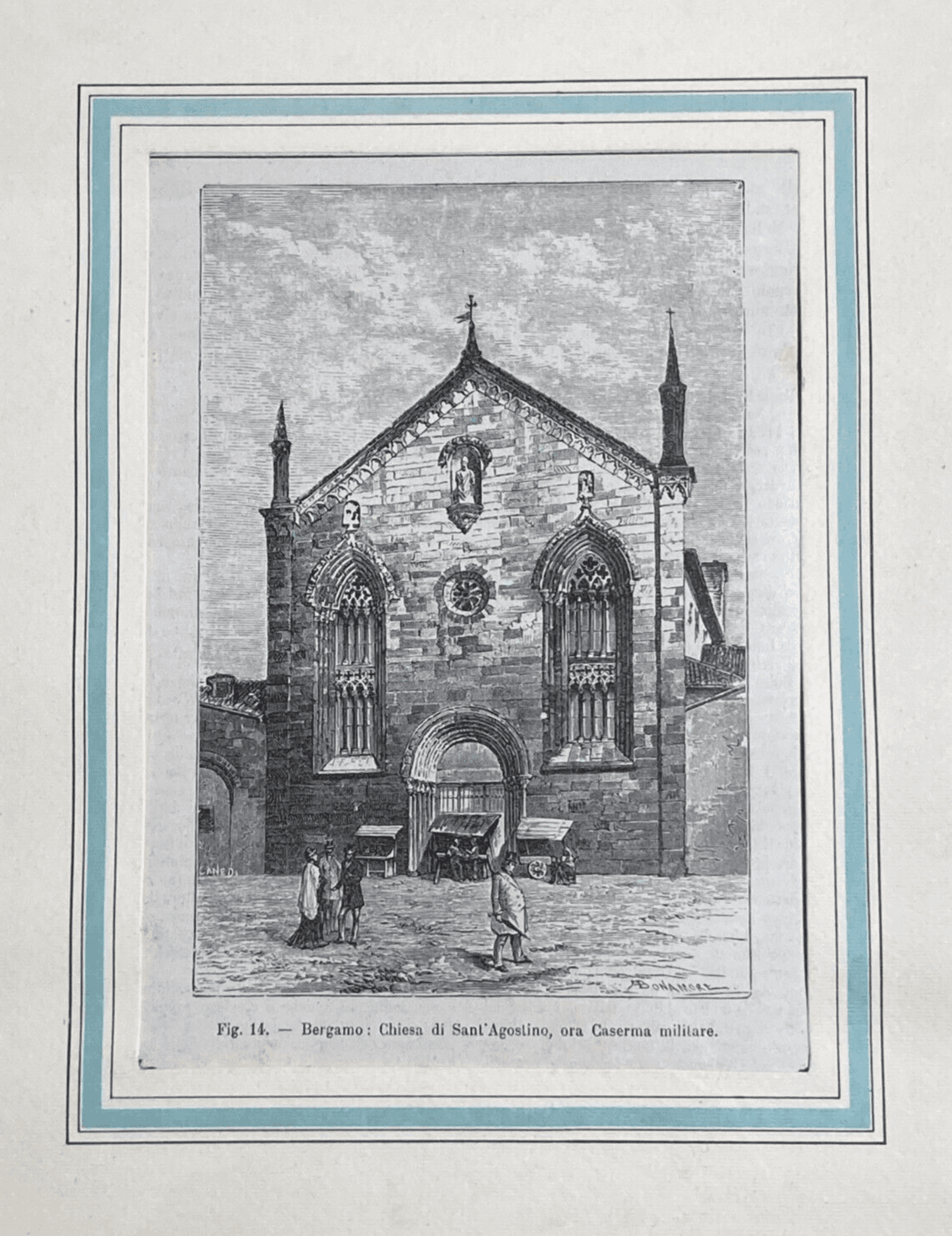 Bergamo Antica Stampa Chiesa Di Sant'Agostino Prospettiva Architettonica Animata