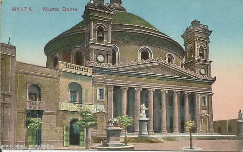 Musta Dome Malta Cartolina Antica 1917 Prospettiva Architettonica