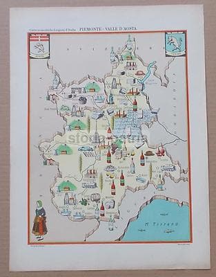 Piemonte, Torino, Cuneo, Novara, Monte Bianco, Biella: Decorativa Cartografia d'Epoca