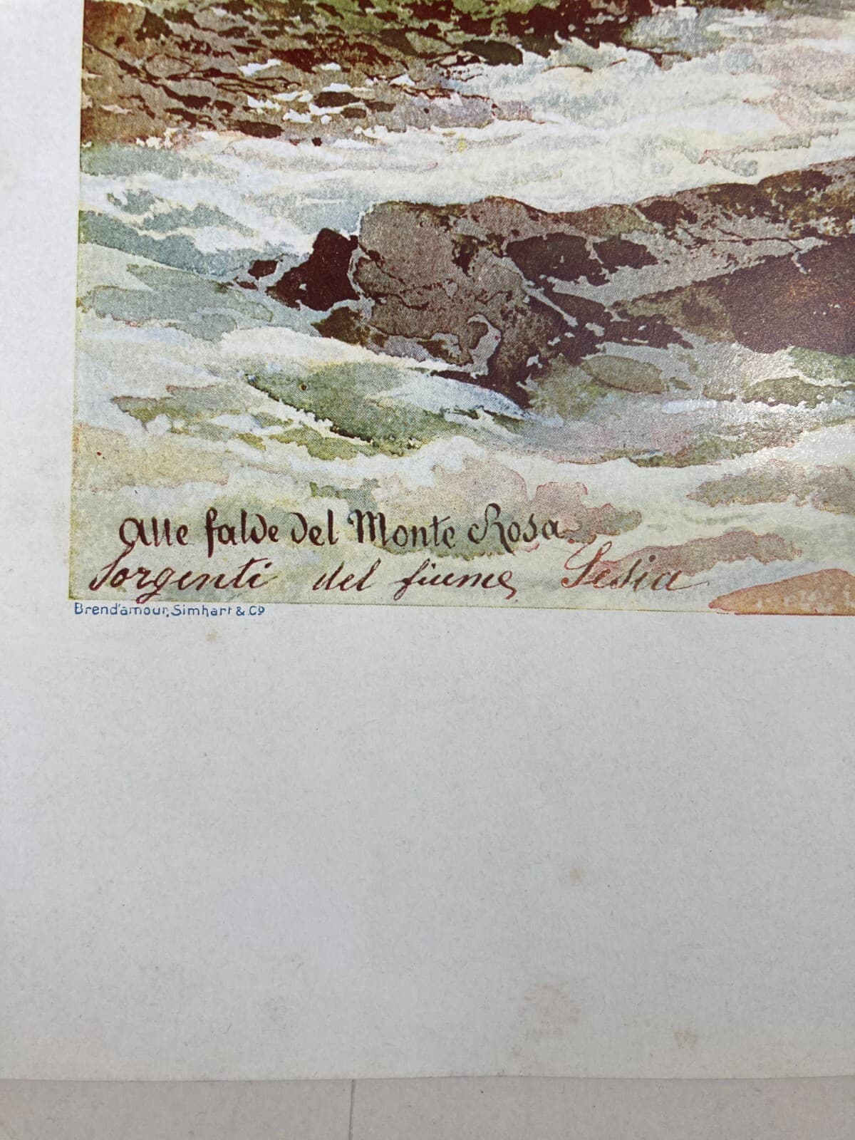 Valle d'Aosta, Monte Rosa: Sorgenti Del Fiume Sesia. Antica Stampa A Colori Di Carlo Ferrario