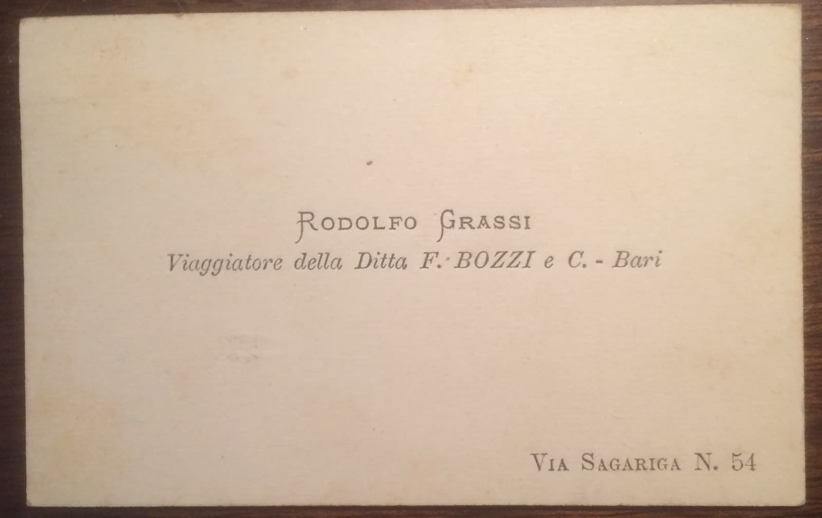 Antico Biglietto Da Visita: Rodolfo Grassi, Ditta Bozzi, Bari
