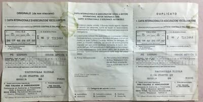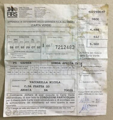 Motociclismo, Motori: Honda Africa Twin, Assicurazioni FIRS, Carta Verde Vintage, 1992