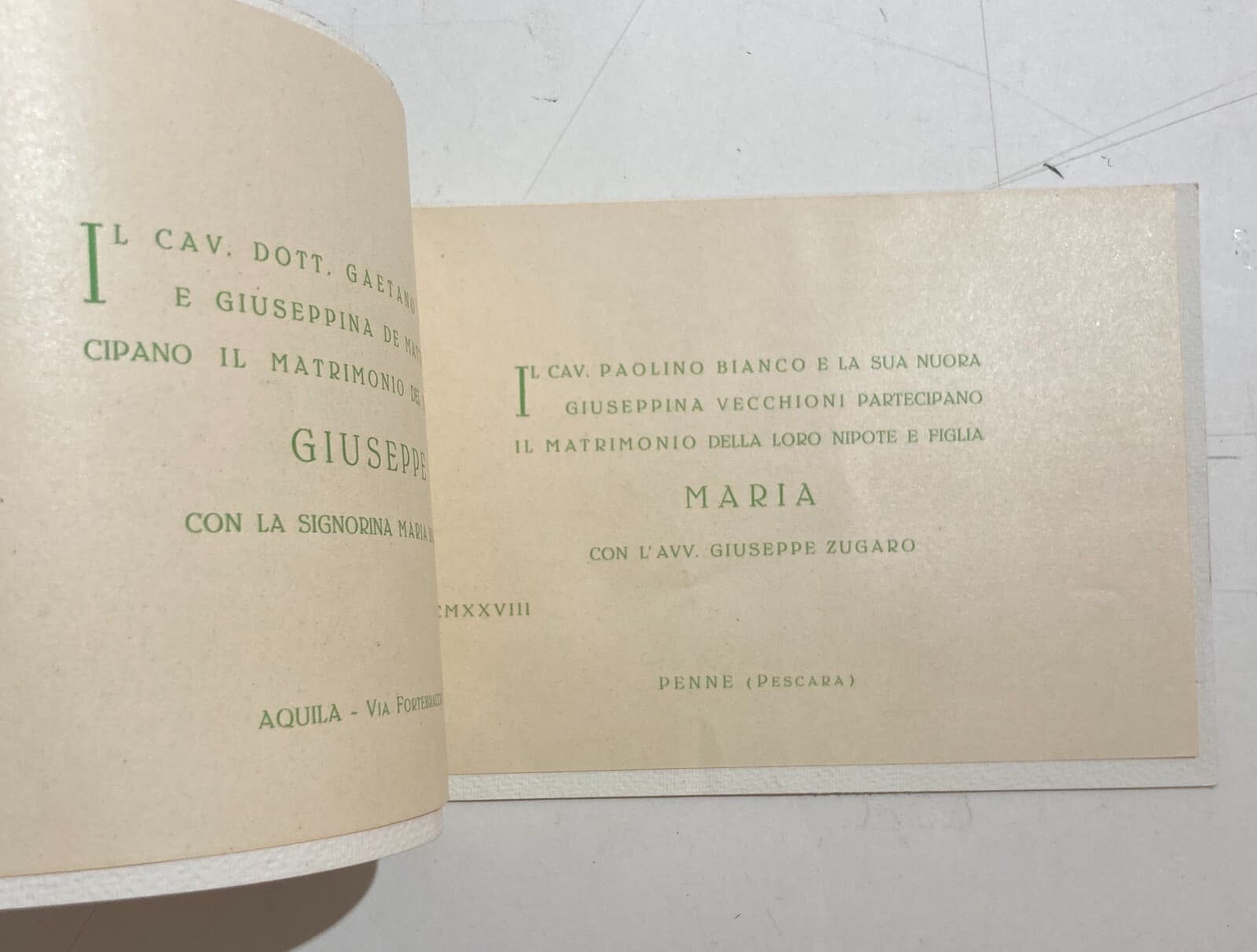 Abruzzo: Invito Per Nozze, Aquila Penne (Zugaro Bianco), 1928