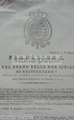 Antico Editto Borbonico, Stemma Araldico, Intonti, Marchese Delle Favare, 1828