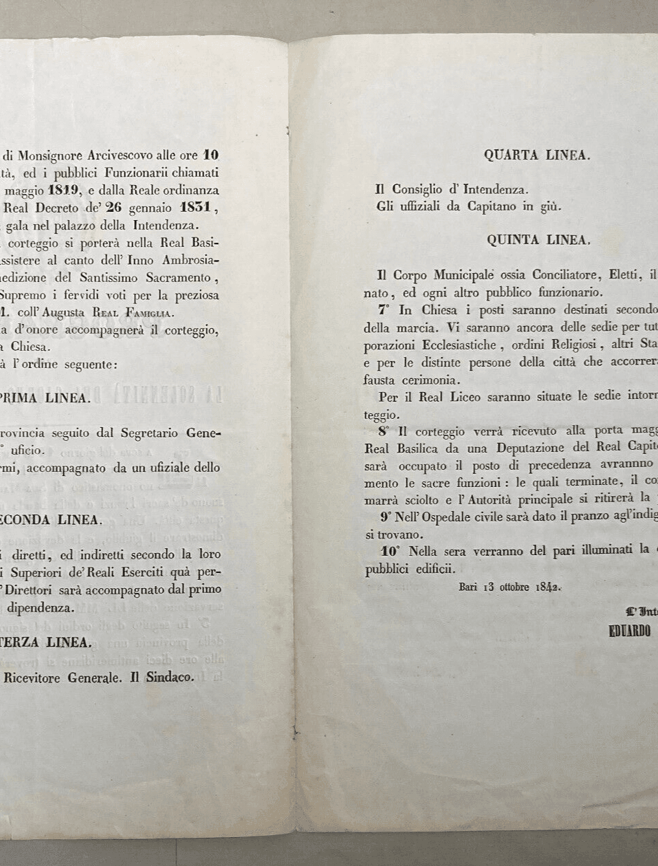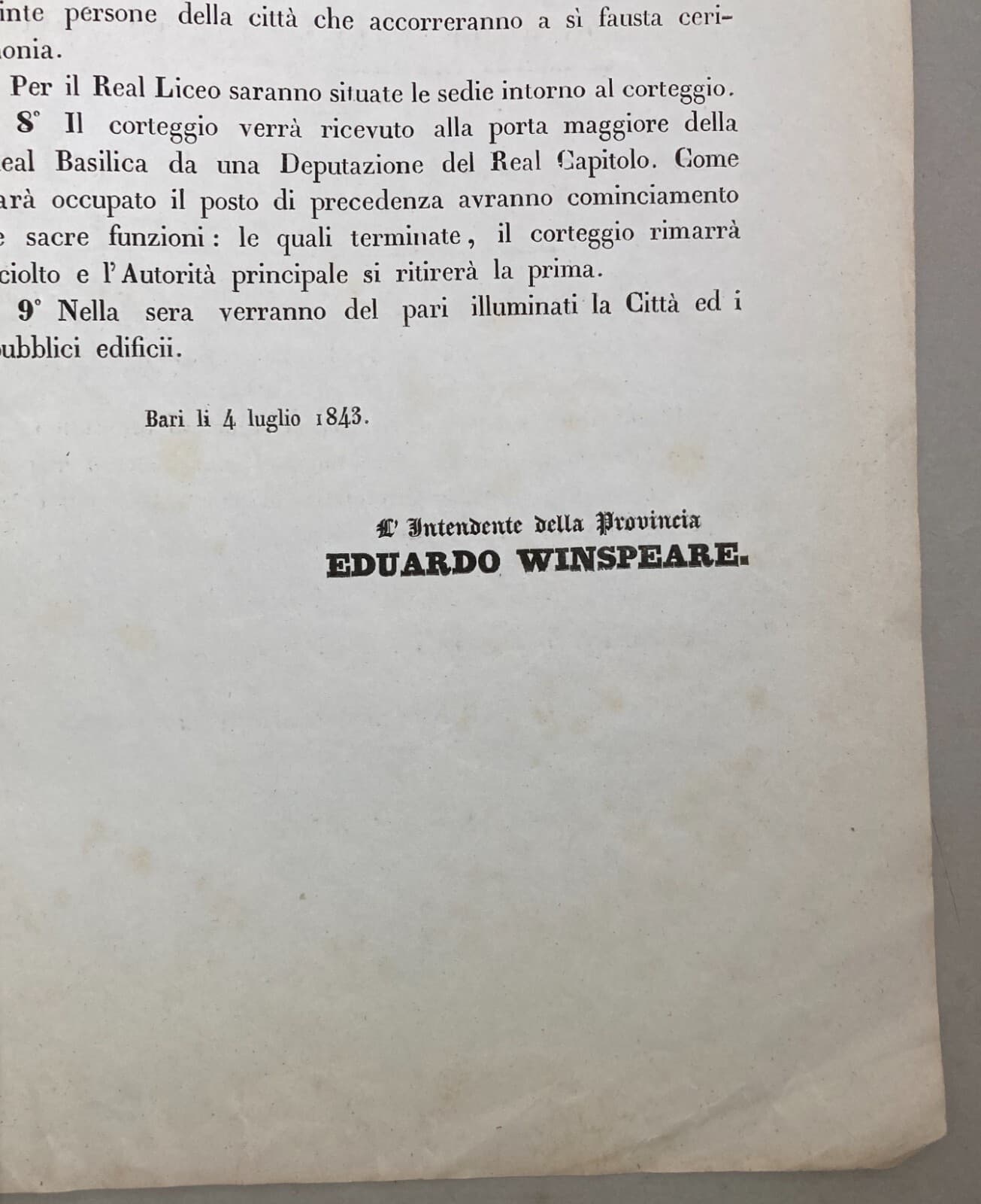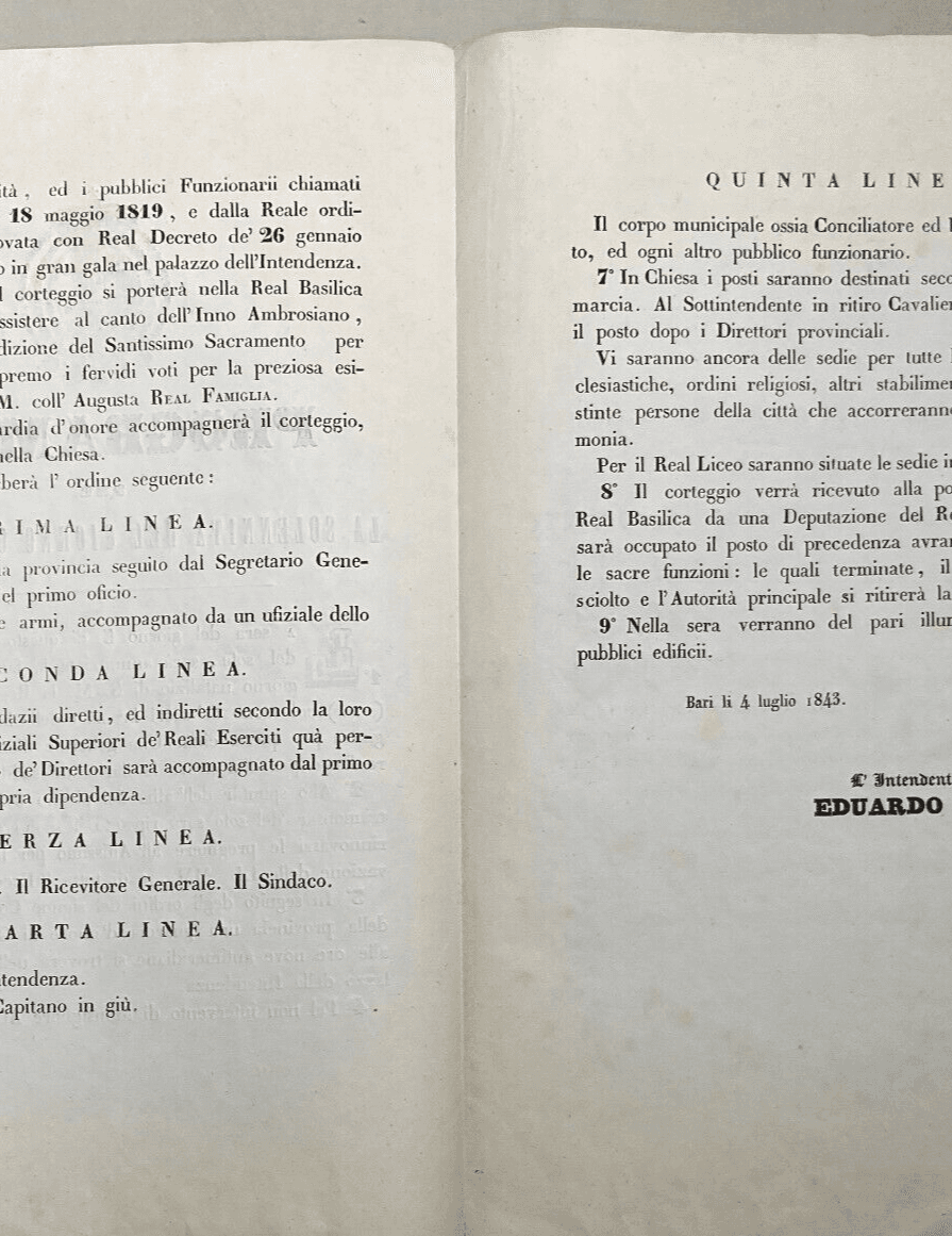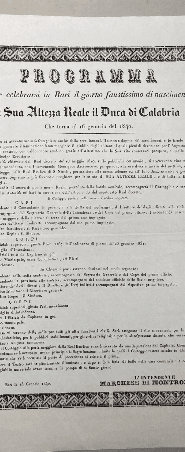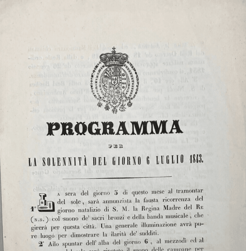 Puglia Bari Borboni Festeggiamenti Per Il Compleanno Della Regina 1843