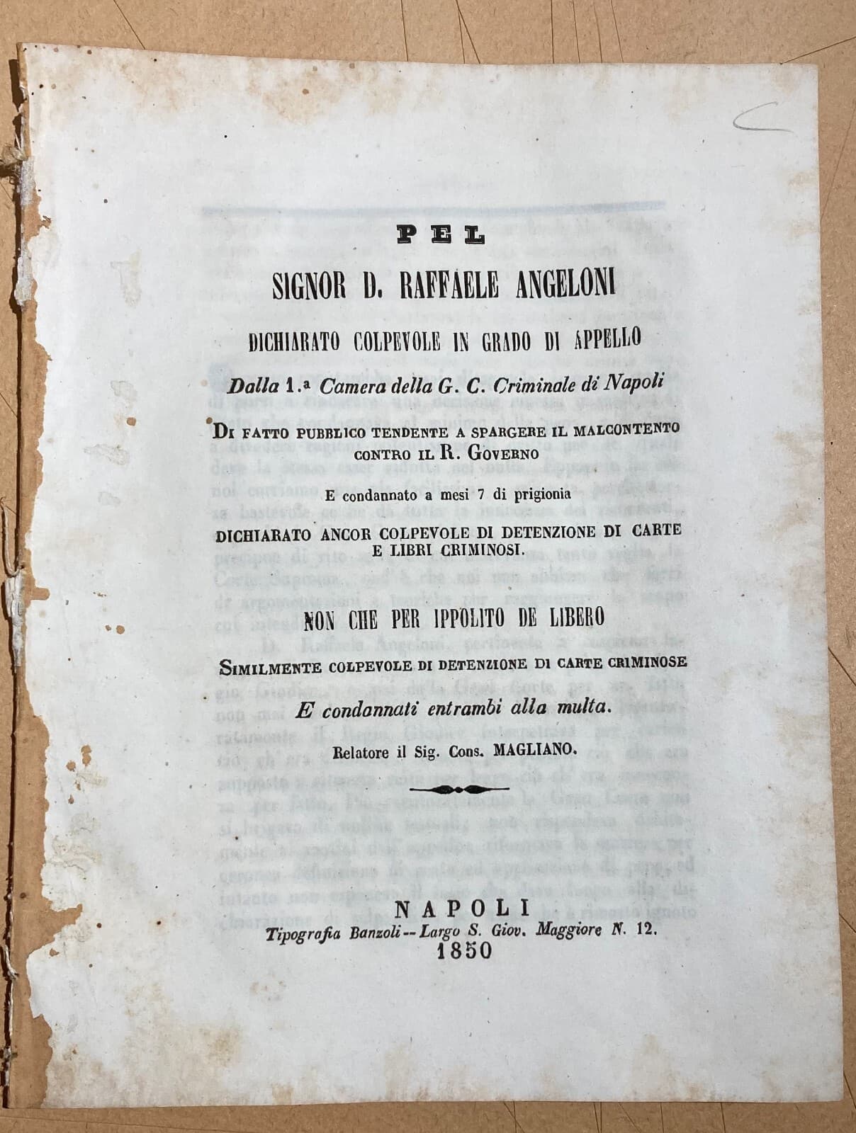 Napoli, Abruzzo, Roccaraso: Giuridica, Risorgimento, Possesso Di Carte Criminose, 1850