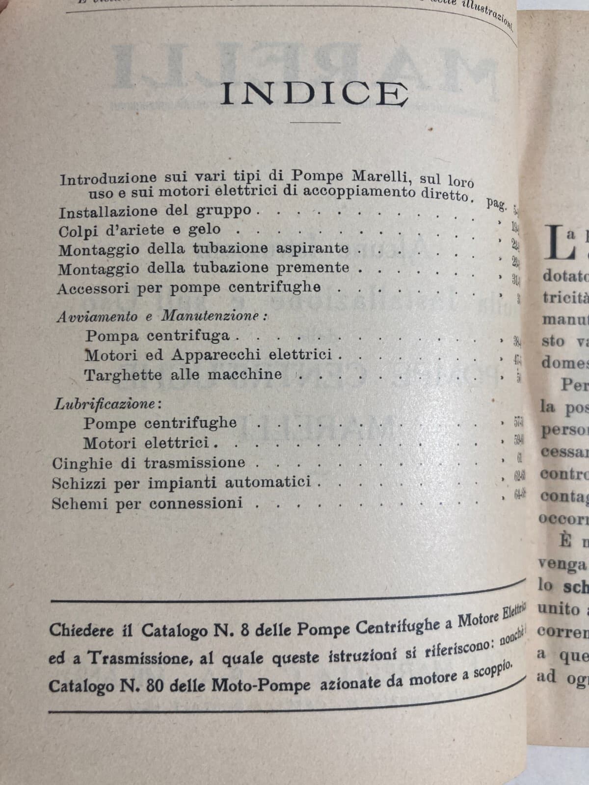 Marelli: Norme Di Manutenzione Delle Elettropompe Centrifughe (1930)
