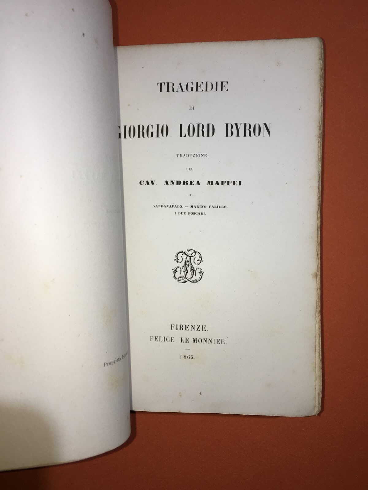 Giorgio Byron, Tragedie: Sardanapalo, Faliero, Foscari Le Monnier, 1862