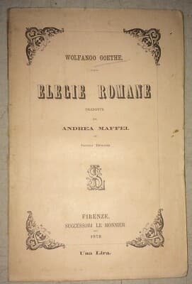 Wolfgang Goethe, Elegie Romane: Antica Edizione Le Monnier, Traduzione Di Andrea Maffei, 1879