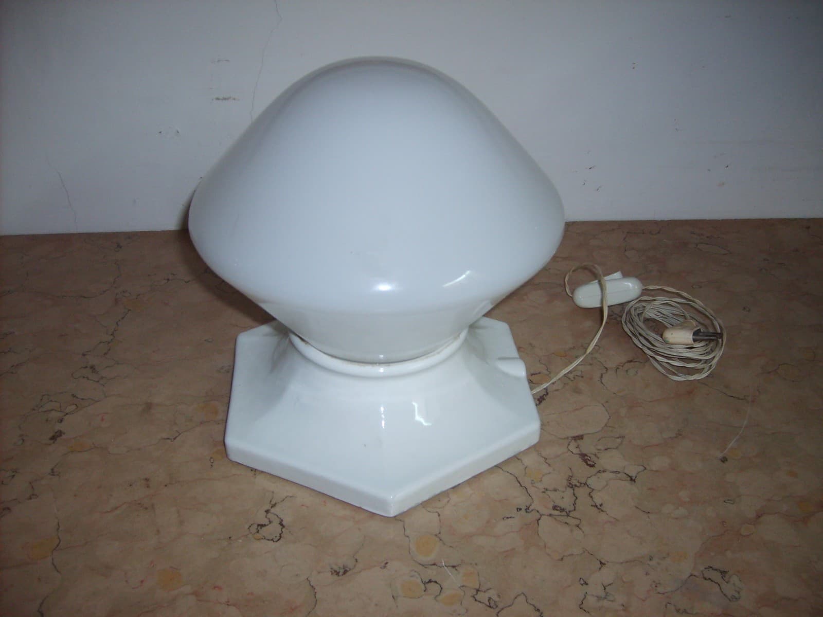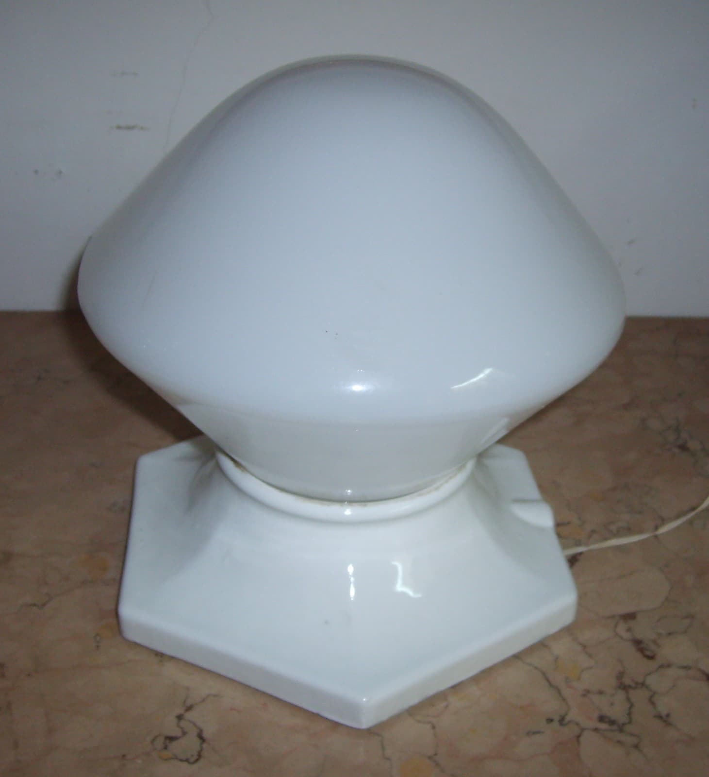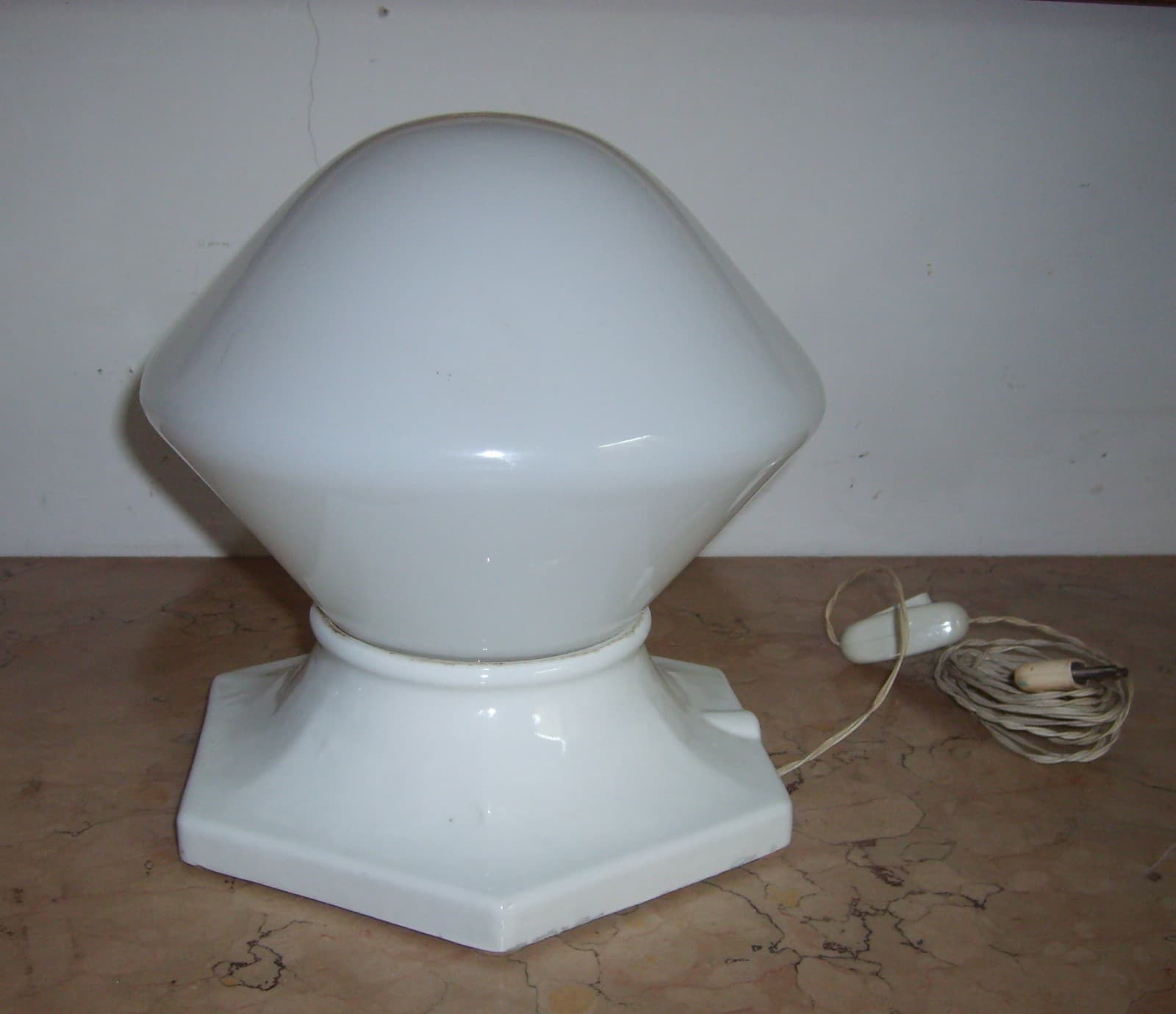 Lampada Da Tavolo Art Deco In Porcellana E Vetro Opalescente